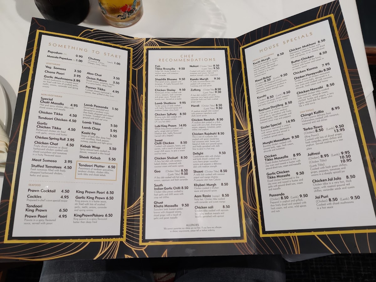 You’ll find a variety of Balti dishes, such as Chicken Balti and Lamb Balti, known for their vibrant, spicy flavours and hearty portions, ideal for sharing or settling into a quietly satisfying dinner. Traditional dishes, including options like Chicken Tikka and King Prawn, provide reliable, well-loved flavours that pair well with sides like garlic naan or a glass of red wine. The menu also features chef recommendations with a distinctive South Asian twist, offering a chance to explore bold and regional tastes.